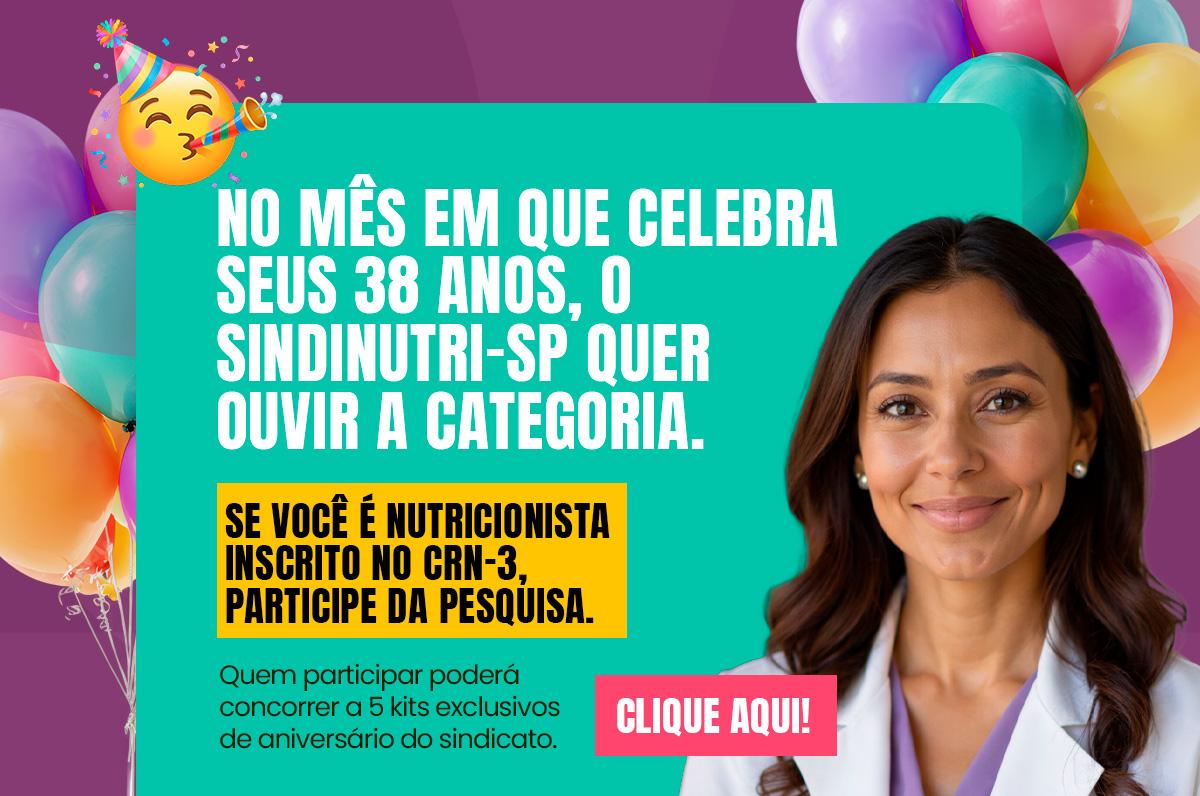 Utilizamos seus dados para analisar e personalizar nossos conteúdos e anúncios durante a sua navegação em nossa plataforma e em serviços de terceiros parceiros. Ao navegar pelo site, você autoriza o SindiNutri-SP Sindicato dos Nutricionistas do Estado de São Paulo a coletar tais informações e utilizá-las para estas finalidades. Em caso de dúvidas, acesse nossa Políticas de uso de cookies.